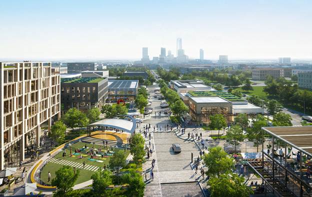 - Infilling & densification – Vacant lots and under-utilized parcels will be turned into multi-story mixed-use nodes; even sections of streets may be re-imagined (see Classen Drive park conversion).